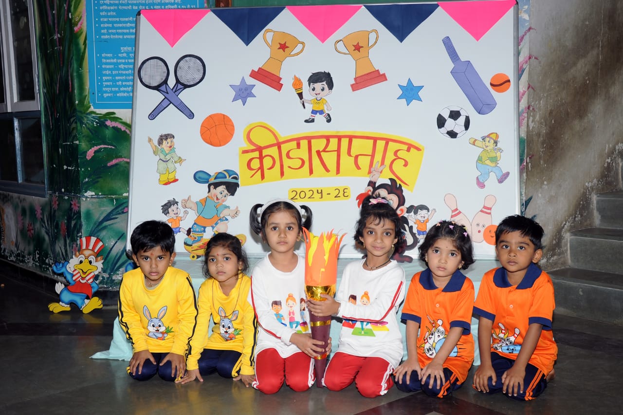चिमुकल्या विद्यार्थ्यांमध्ये मोबाईल आणि social media पासून परावृत्त होऊन …. खेळाची आवड निर्माण व्हावी, शारीरिक विकास व्हावा आणि मित्रांबरोबर खेळाचा मनसोक्त आनंद घेता यावा या उद्देशाने या क्रीडासप्ताहाचे आयोजन करण्यात आले होते.