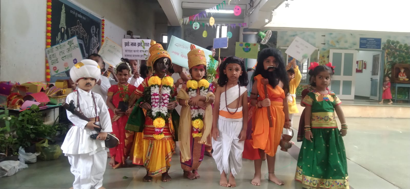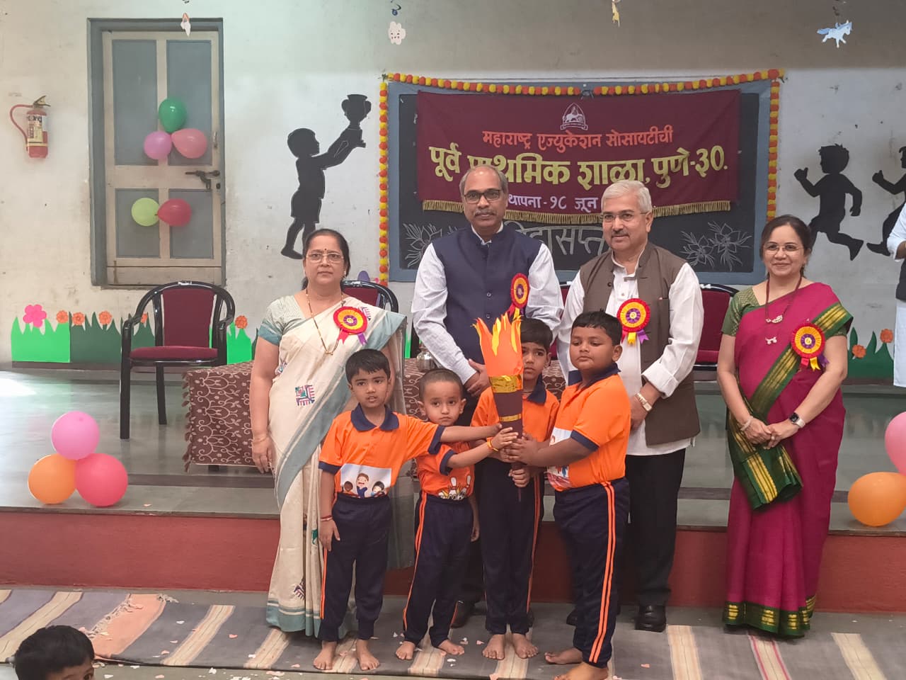 म. ए. सो. पूर्व प्राथमिक शाळेतील मुलांचा आजचा पहिला दिवस. मुलं आणि पालक दोघेही खूप उत्साहित होते. शिक्षणाचा प्रसार करणाऱ्या समाजसुधारकांकडून स्वागत …. अशी थीम करण्यात आली होती.