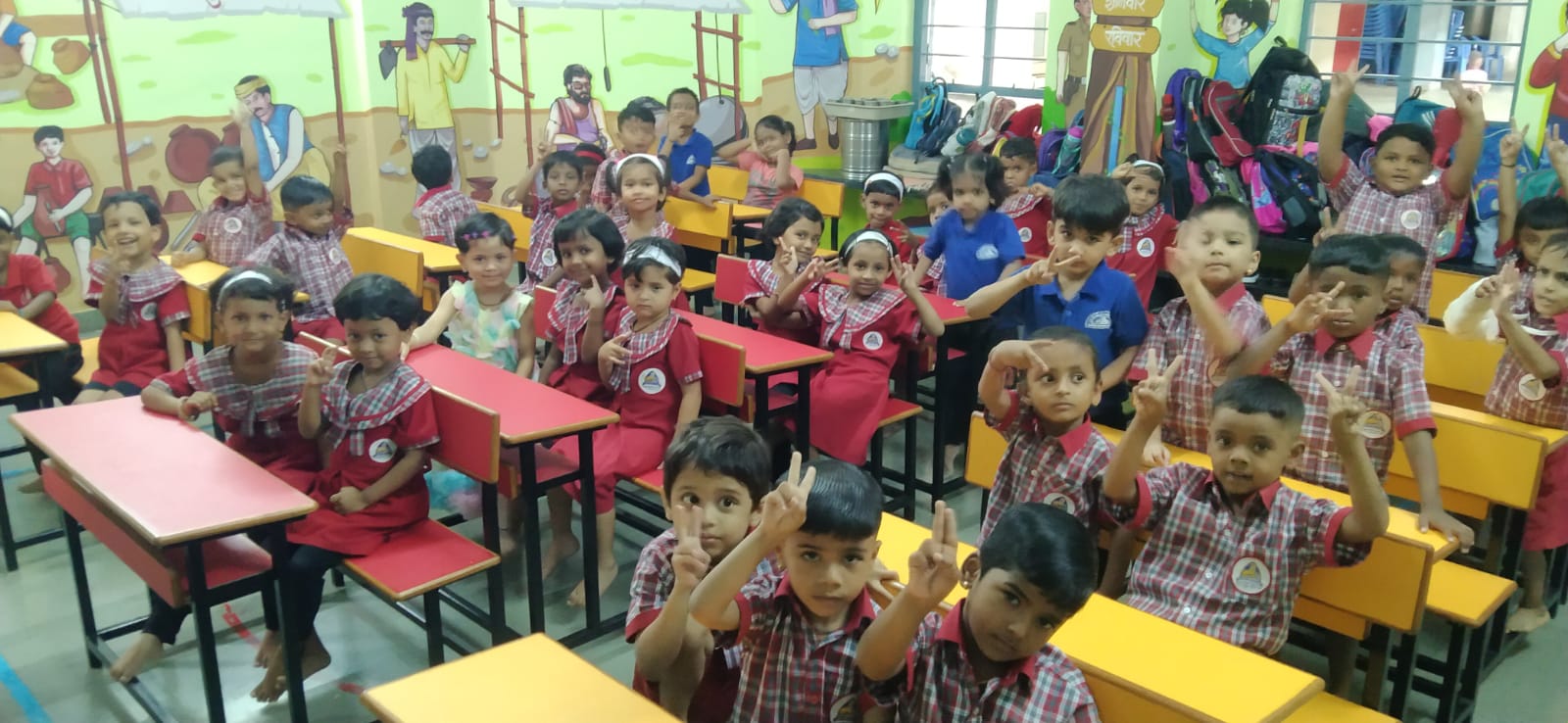 शिक्षणासाठी झटणाऱ्या सावित्रीबाई फुले आणि म. ज्योतिबा फुले तसेच बालवाडी शिक्षणाचा पाया रचणाऱ्या ताराबाई मोडक यांची वेशभूषा केलेल्या पालकांनी मुलांना हाताला धरून शाळेच्या प्रांगणात प्रवेश केला. मुख्याध्यापिका सौ. मेधा दाते आणि सर्व शिक्षकांनी मुलांचे औक्षण करून स्वागत केले. शाळेच्या पहिल्या दिवसाची आठवण म्हणून मुलांचा हाताच्या अंगठ्याचा ठसा घेतला. सर्व पालक आणि मुलांना एकत्र बसवून सरस्वती स्तोत्र घेतले. मुख्याध्यापकांनी पालकांना NEP बाबत थोडक्यात माहिती सांगितली आणि पूर्व प्राथमिक शिक्षणाचे महत्व पटवून दिले. त्यानंतर सर्व पालक मुलांना घेऊन आपापल्या वर्गात गेले. NEP म्हणजे नवीन राष्ट्रीय शैक्षणिक धोरणानुसार चित्ररूप वर्गभिंती चे नूतनीकरण पाहून मुलं आणि पालक खूप खुश झाले.