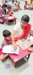 सर्व पालक अगदी भान विसरून मूर्ती घडवत होते. मुलांनी देखील पालकांच्या मदतीने त्यांची स्वतःची एक छोटी मूर्ती तयार केली. त्यानंतर त्या मूर्तीची पूजा करून आरती केली, तसेच गणपतीस्तीत्र पठण केले.काही पालकांनी आपल्या कल्पकतेचा वापर करून अत्यंत सुंदर अशा मूर्ती तयार केल्या. मुलांच्या निमित्ताने त्यांना मूर्ती घडवता आली….. याचा आनंद त्यांच्या चेहऱ्यावर दिसत होता आणि हा आनंद मूर्तीतील बाप्पाच्या चेहऱ्यावर सुद्धा उतरला होता. सगळ्यांचे बाप्पा खूप सुंदर होते. मेधाताईंनी सर्व पालकांचे आणि मुलांचे खूप कौतुक केले.