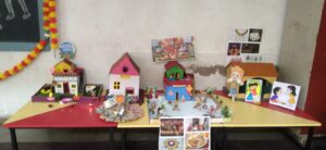 दिवाळी म्हटलं की किल्ला हा आलाच….. म्हणून पालक, शिक्षक आणि मोठ्या गटाच्या मुलांनी मिळून शिवनेरी किल्ला बांधला. तर लहान गट, खेळवाडीच्या मुलांनी पालकांची मदत घेऊन बनवलेले आकाशकंदील आणले. त्यामुळे शाळा अगदी खूप छान सजली. तसेच मोठ्या गटाच्या पालकांनी दिवाळीच्या प्रत्येक दिवसाचे महत्व सांगणारे मॉडेल तयार केले.
